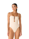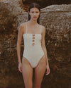 El Vestido de Baño Entero Sol Shell Ivory combina minimalismo y detalle en una silueta elegante. Su tejido acanalado se adapta suavemente al cuerpo, realzando la figura con naturalidad. Los aros decorativos en el escote aportan un toque moderno, mientras las tiras de perlas ajustables completan la prenda con un aire femenino y sofisticado.
