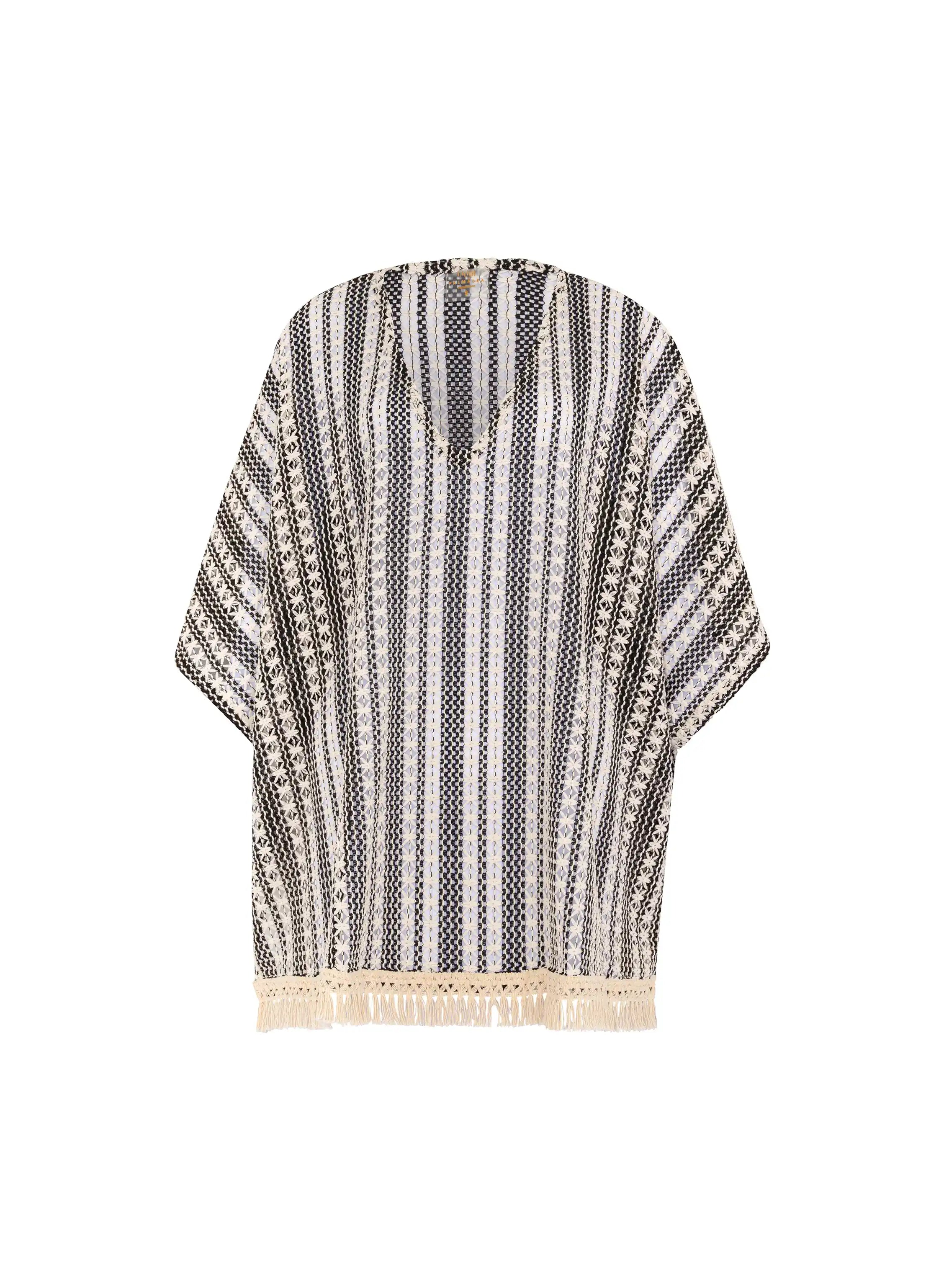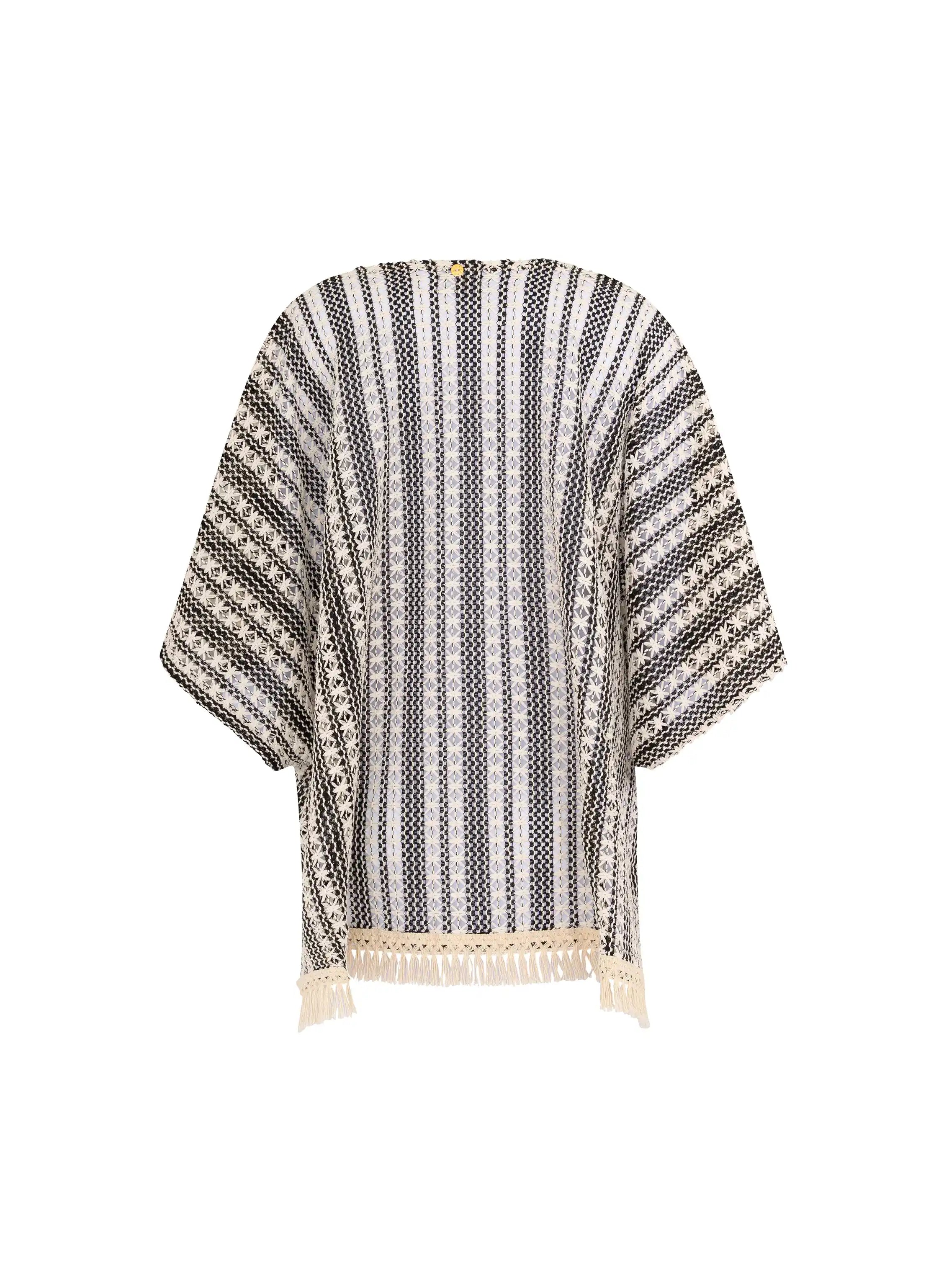 The Sasa Onyx Poncho is the perfect piece to complete your beach look with elegance and movement. Its lightweight, fluid design with fringe detailing along the lower edge adds a bohemian yet sophisticated feel. Ideal to wear over your swimsuit or as a versatile cover-up for sunny afternoons.