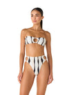 El Panty de Bikini Vera Moon realza la figura con una silueta de tiro alto y detalles modernos. Los aros decorativos a los costados aportan equilibrio entre estructura y movimiento, mientras el print gráfico en blanco y negro refuerza su carácter contemporáneo. Una pieza que combina soporte y estilo con elegancia natural.