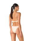The Ali Shell Ivory Bikini Top blends structure and softness in a refined silhouette. Underwire cups provide natural lift and support, while adjustable pearl straps add a distinctive handcrafted detail. Made from ribbed quick-dry fabric, it embodies timeless elegance in a neutral tone.
