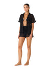 The Maya Nilo Black Shirt brings a sophisticated, fresh touch to beach looks. Made from geometric openwork fabric, it features a relaxed fit with short sleeves and front buttons. Its versatile design can be worn open over swimwear or closed for a more refined style.